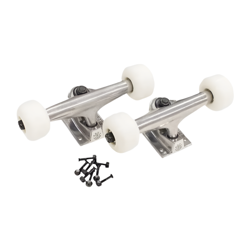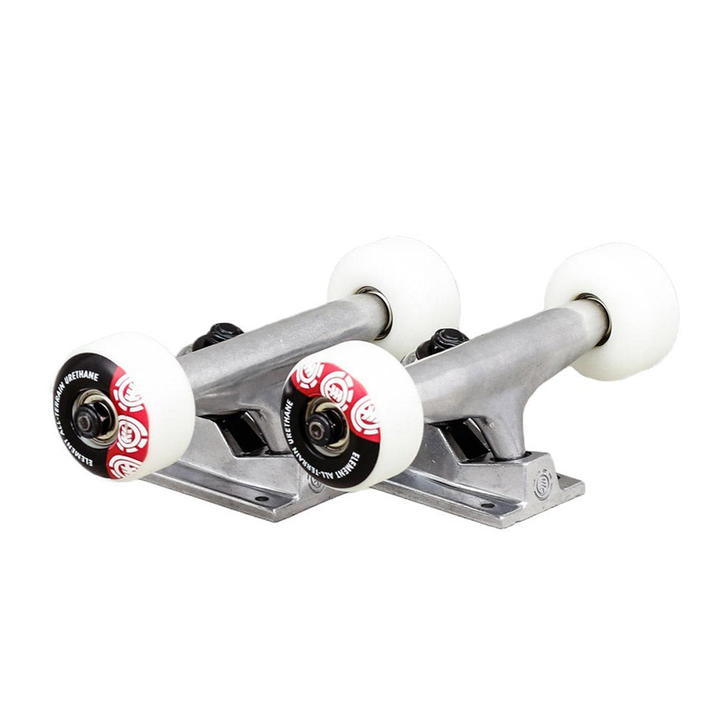 The Component Bundle Trucks are an Element staple that deliver street-ready performance and durability. Designed and developed with Elements decades of technical expertise and industry superiority, made from premium materials. Comes with a set of 54mm 99A wheels fabricated from Elements standard formula and ABEC 5 bearings. Size specific, fits 8.25" to 8.5" decks.